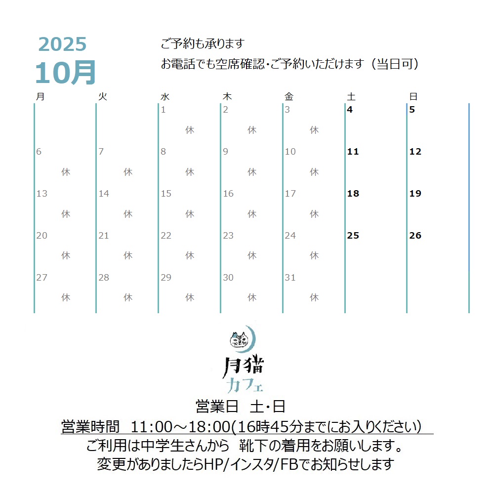 10月の営業予定です。